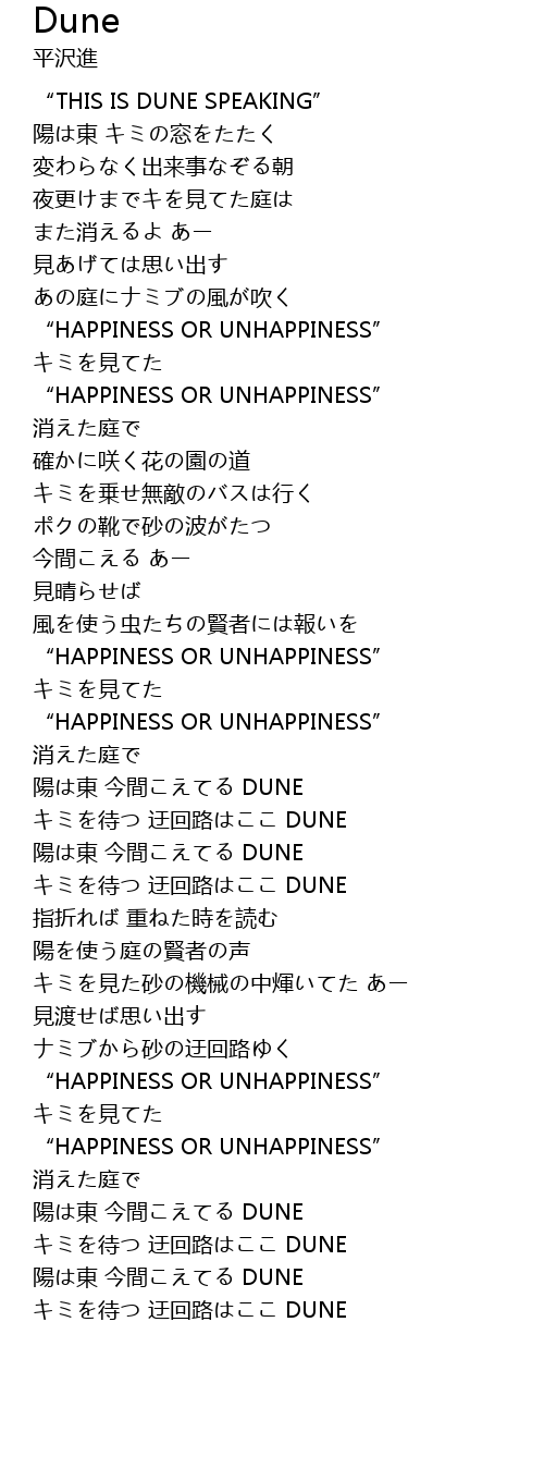 | [02:45.16] | キミを待つ 迂回路はここ DUNE |