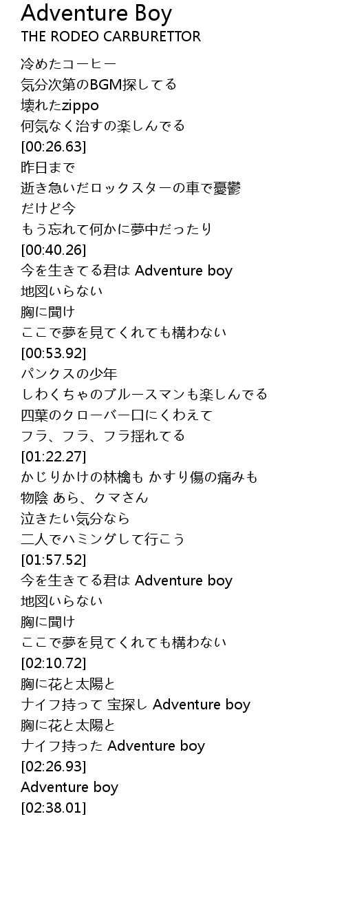| [02:28.77] | Adventure boy |