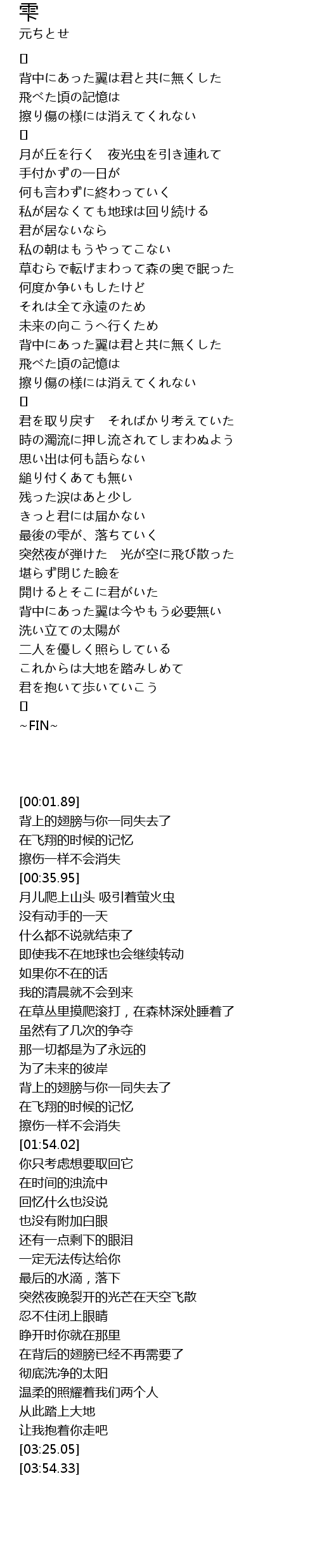 | [01:35.33] | 背中にあった翼は君と共に無くした |