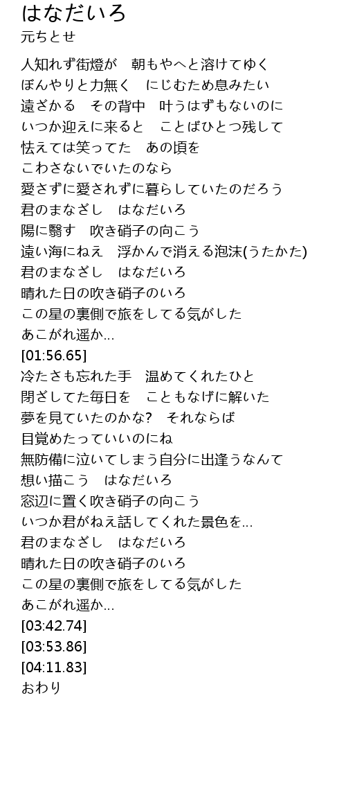 | [03:15.77] | 晴れた日の吹き硝子のいろ |