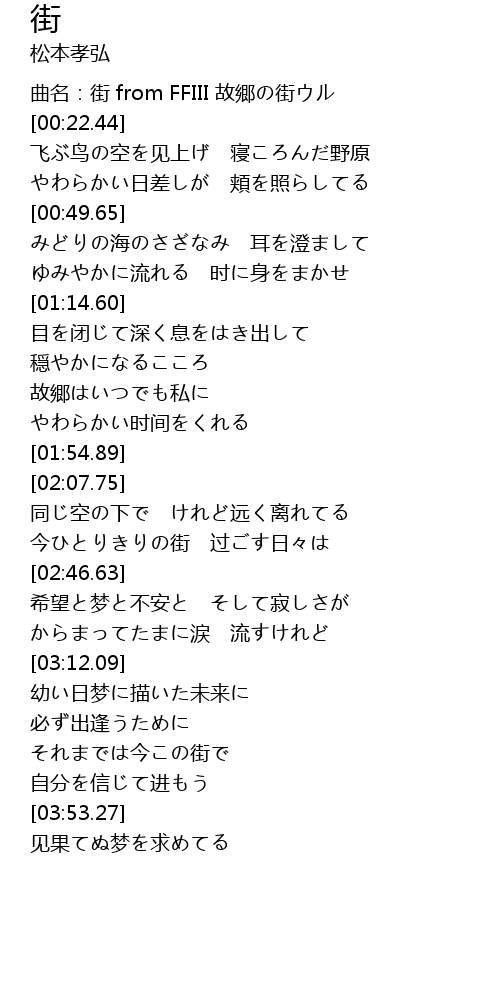 | [00:00.00] | 曲名:街 from FFIII 故郷の街ウル |