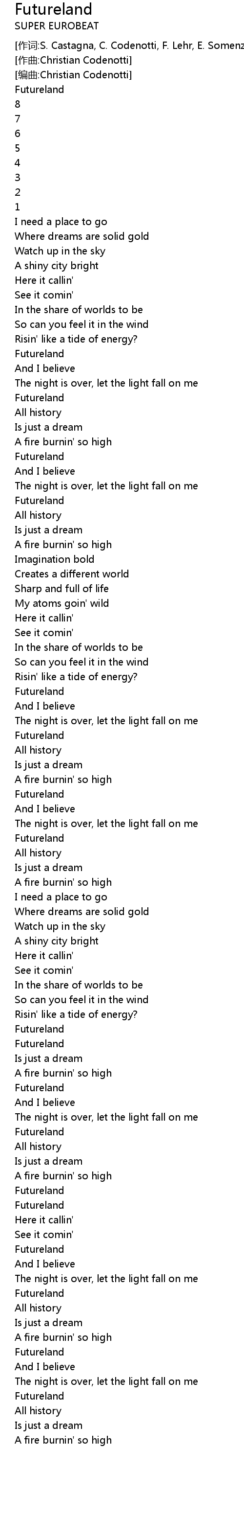 | [作词:S. Castagna, C. Codenotti, F. Lehr, E. Somenzi] | |