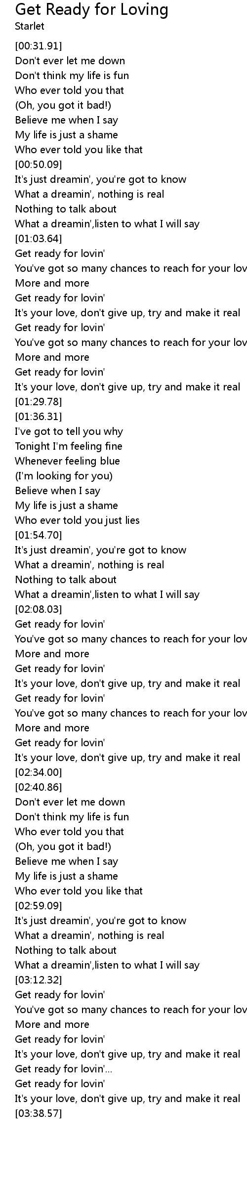 Get ready for lovin' |