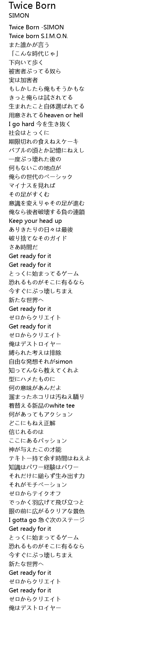 | [00:00.00] | Twice Born -SIMON |