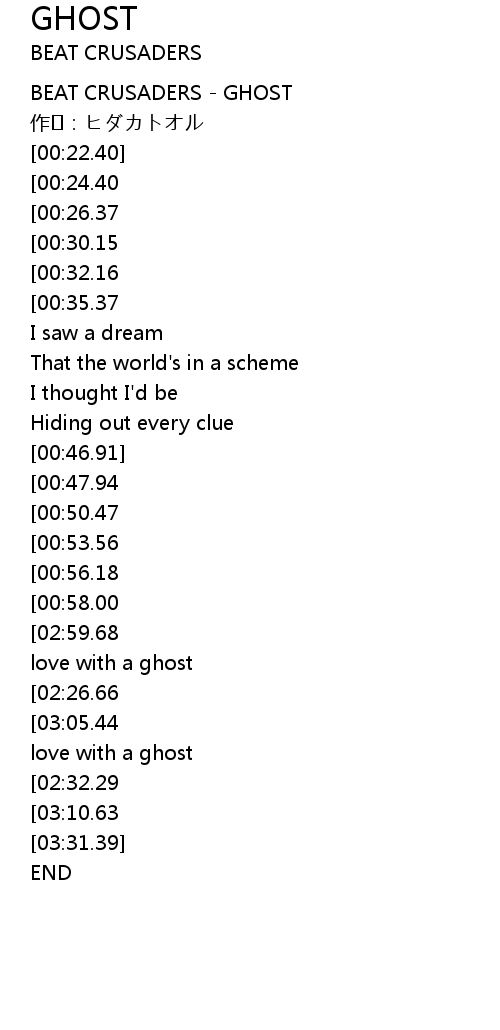 | [00:00.00] | BEAT CRUSADERS GHOST |