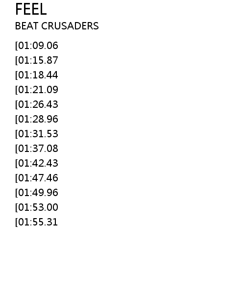 | [00:15.00][01:09.06][02:08.02][02:45.59] | BY CPA JpoPcC lai run cheng |