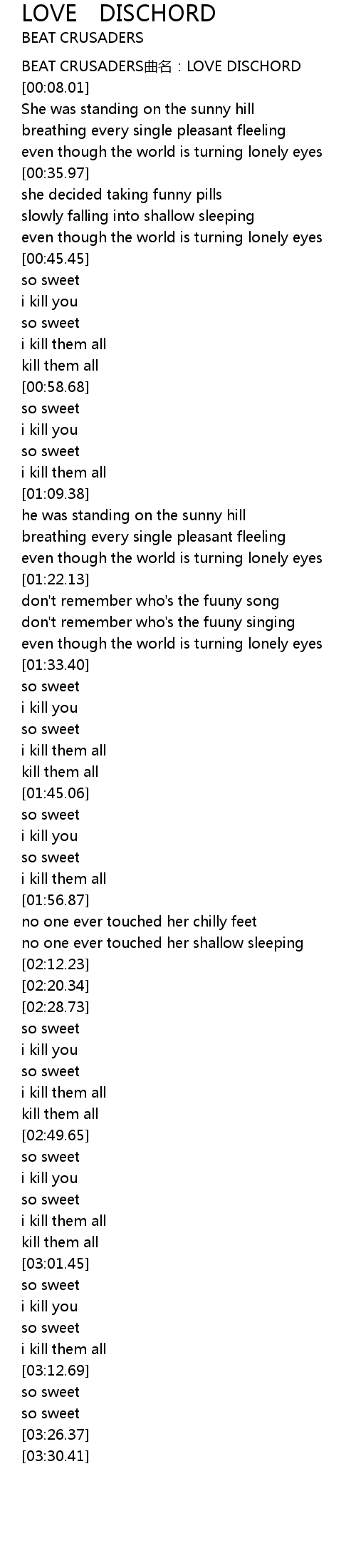 | [00:01.88] | BEAT CRUSADERS qu ming: LOVE DISCHORD |