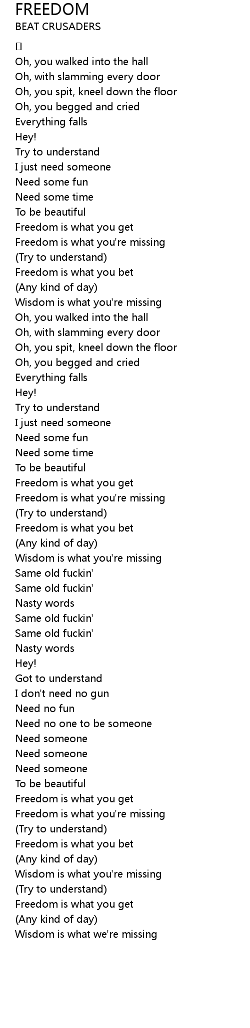 | Freedom is what you' re missing | |