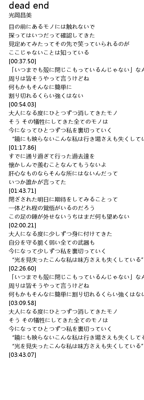 | [03:36.42] | “光を見失ったこんな私は味方さえも失くしている” |