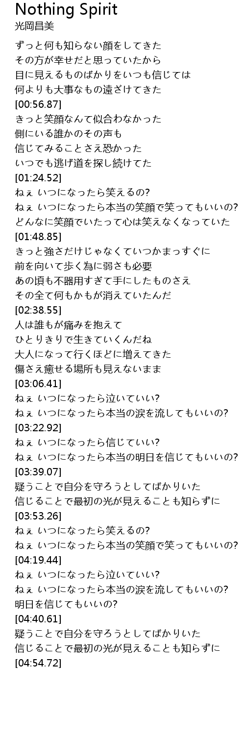 | [04:03.95] | ねぇ いつになったら笑えるの? |