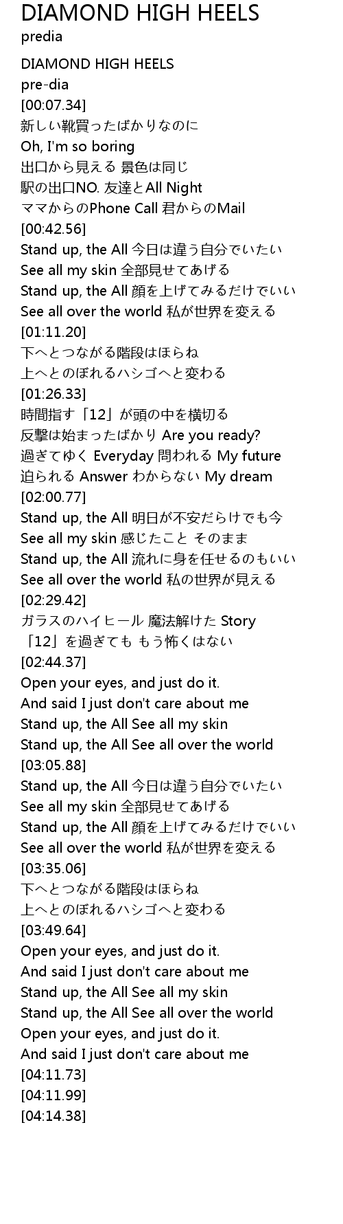 | [00:00.30] | DIAMOND HIGH HEELS |
