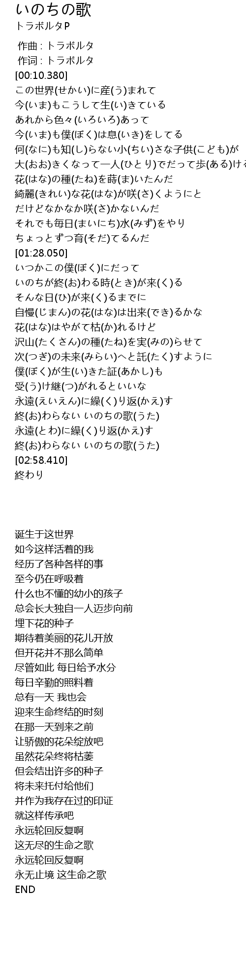 | [02:49.630] | 終(お)わらない いのちの歌(うた) |