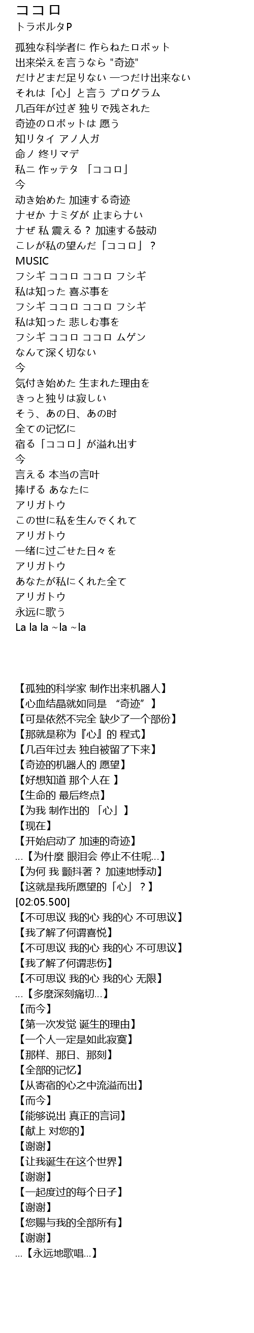 | [01:22.820] | 私ニ 作ッテタ 「ココロ」 |