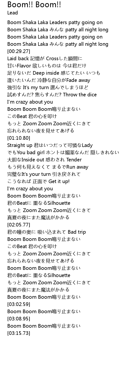 | [00:56.87] | Boom Boom Boom鳴り止まない |