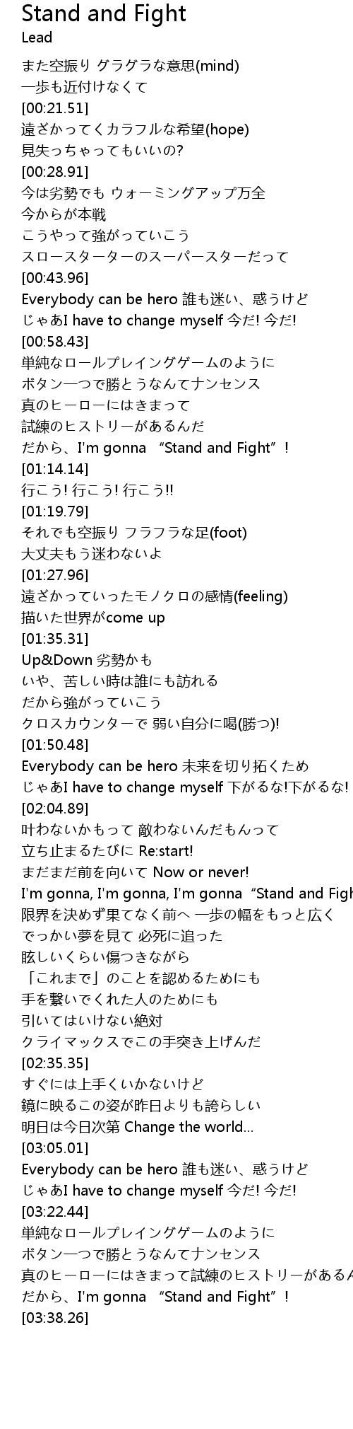| [01:11.52] | だから、I'm gonna “Stand and Fight”! |