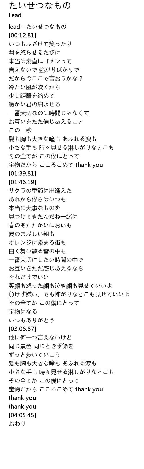 | [03:48.02] | 宝物だから こころこめて thank you |