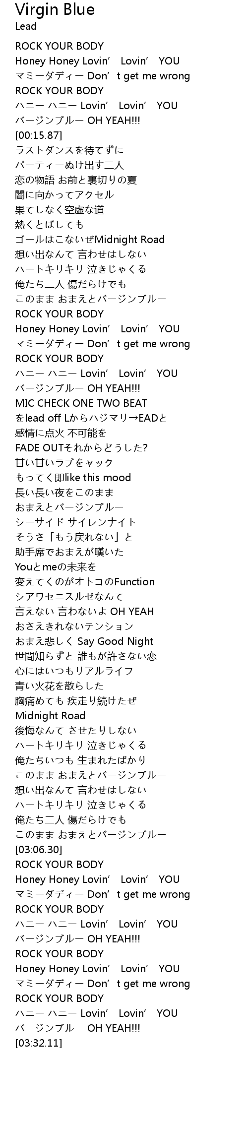 | [03:29.45] | バージンブルー OH YEAH!!! |