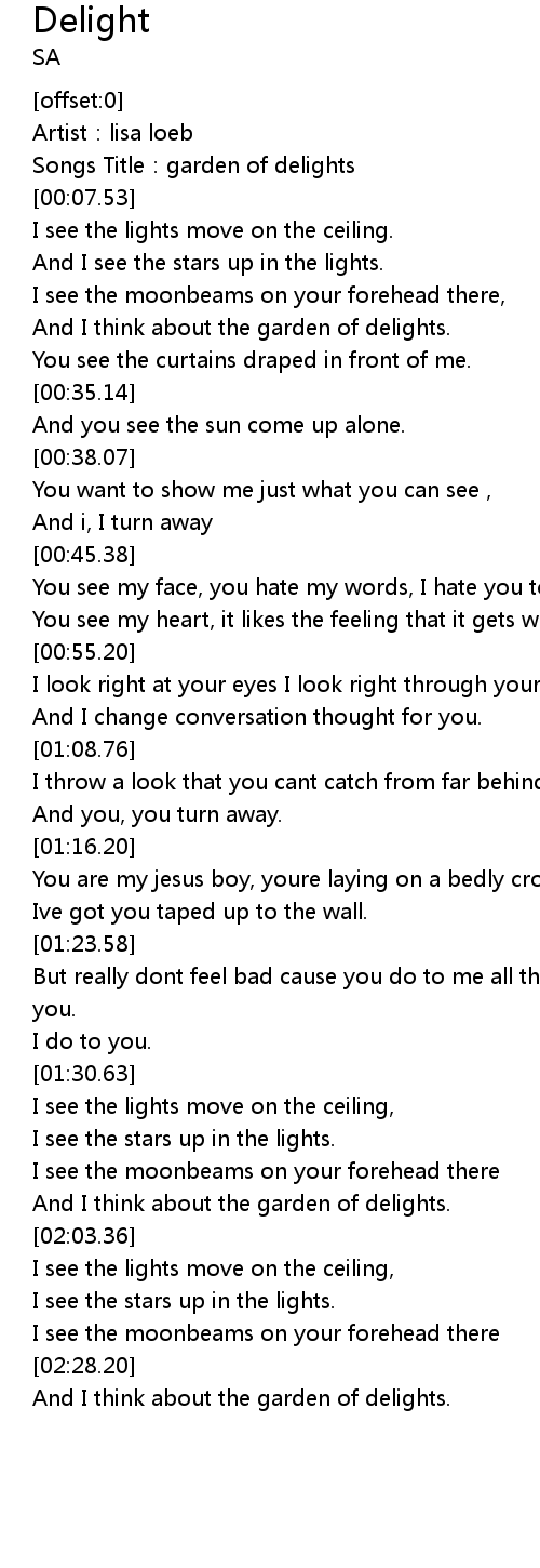 | [00:04.53] | Songs Title: garden of delights |