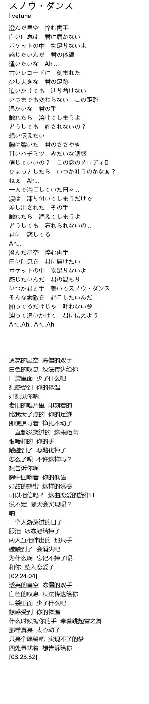 | [03:06.49] | いつか君と手 繋いでスノウ・ダンス |