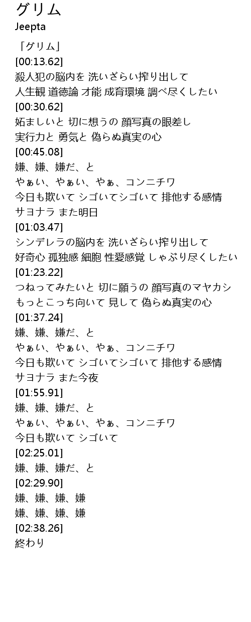 | [00:01.62] | 「グリム」 |