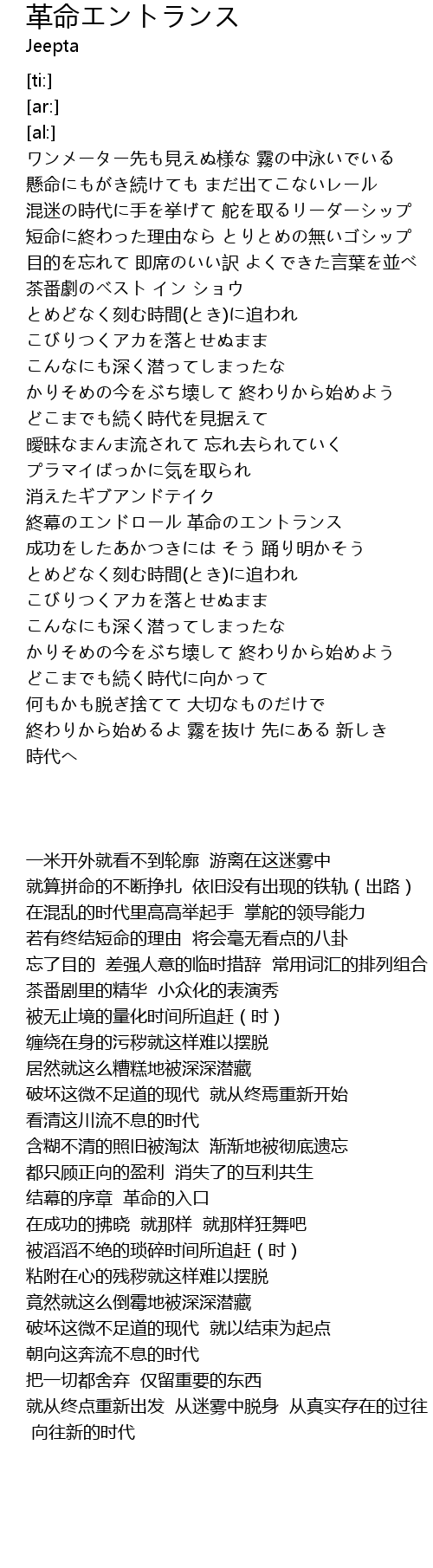 | [02:05.77] | 終幕のエンドロール 革命のエントランス |