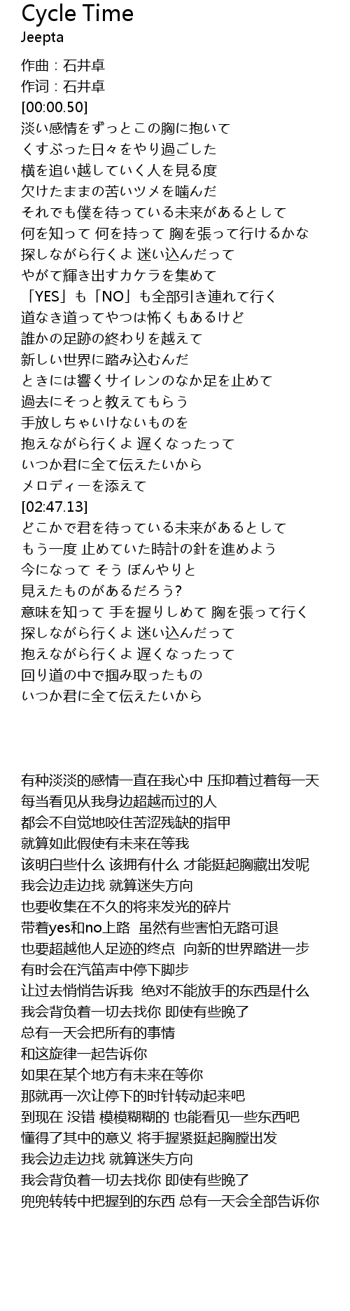 | 歌曲 | Cycle Time |