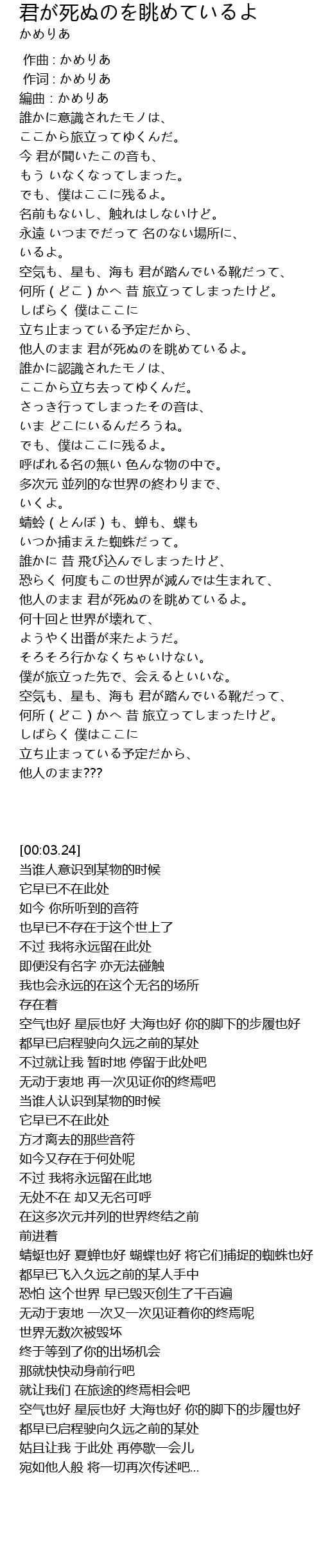 | [01:21.98] | 他人のまま 君が死ぬのを眺めているよ。 |
