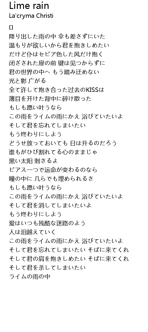 | この雨をライムの雨にかえ 浴びていたいよ | |