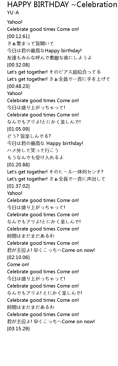| [01:46.12] | Celebrate good times Come on! |