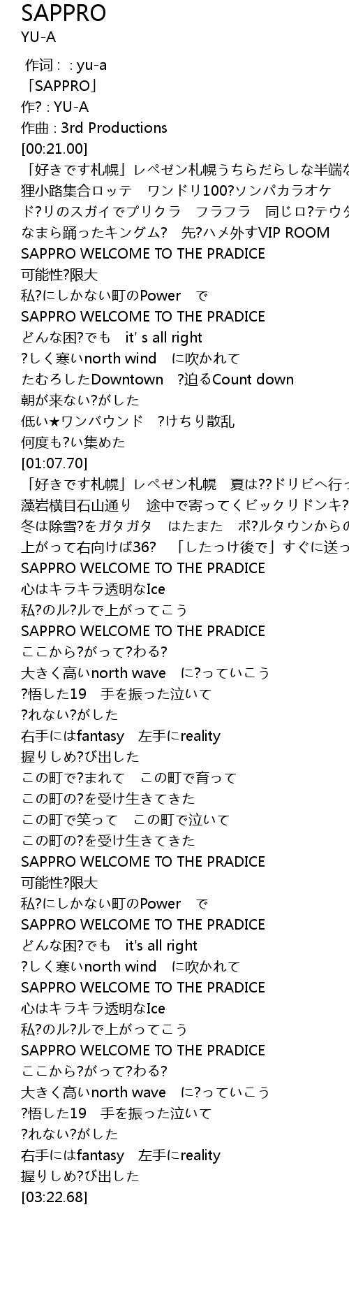 | [00:01.00] | 「SAPPRO」 |