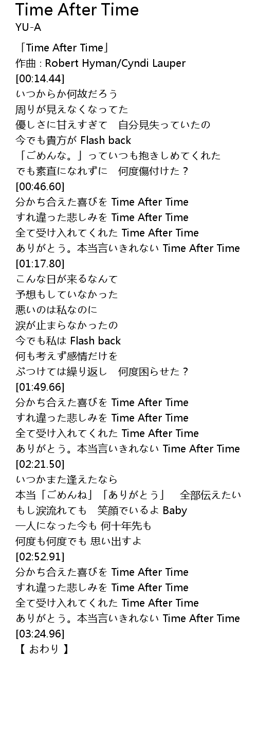 | [03:01.83] | すれ違った悲しみを Time After Time |