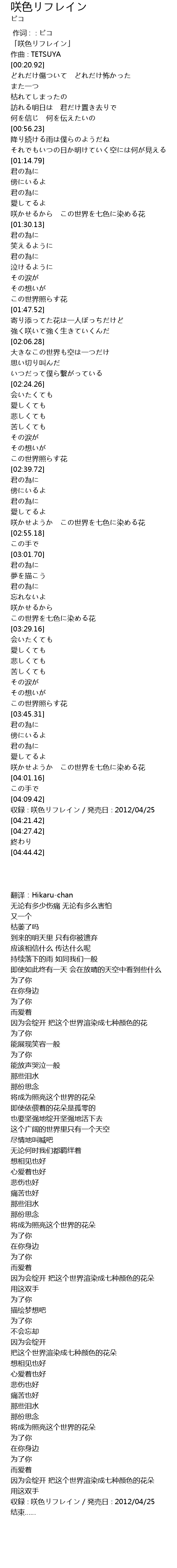 | [04:15.42] | 収録∶咲色リフレイン/発売日∶2012/04/25 |