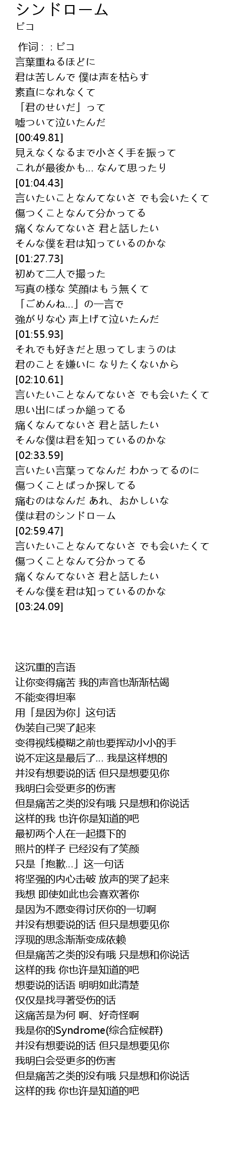 | [02:56.04] | 我是你的Syndrome(综合症候群) |