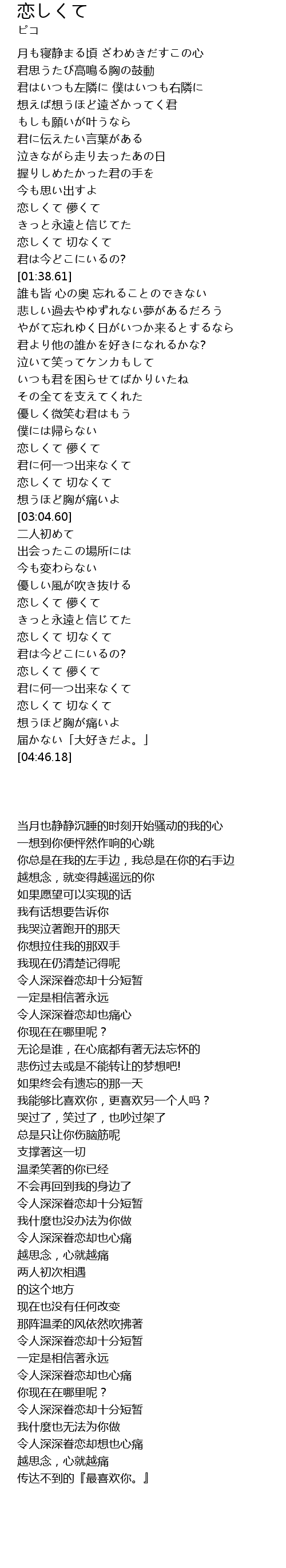 | [04:26.48] | 恋しくて 切なくて |