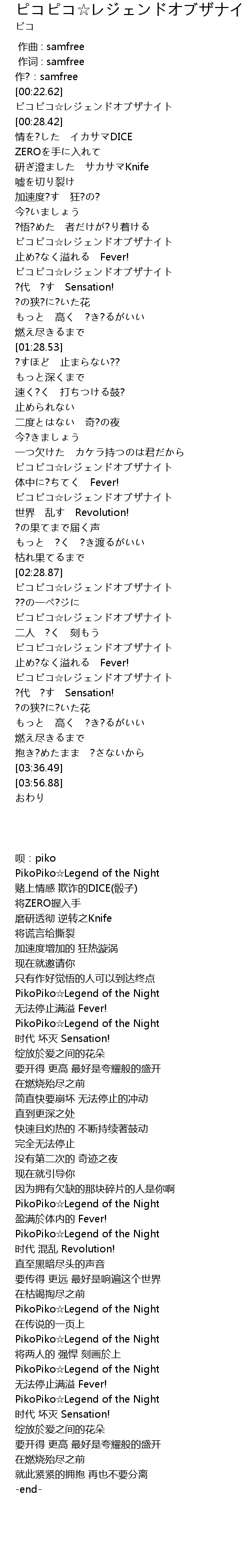 | [02:51.60] | PikoPiko☆Legend of the Night |