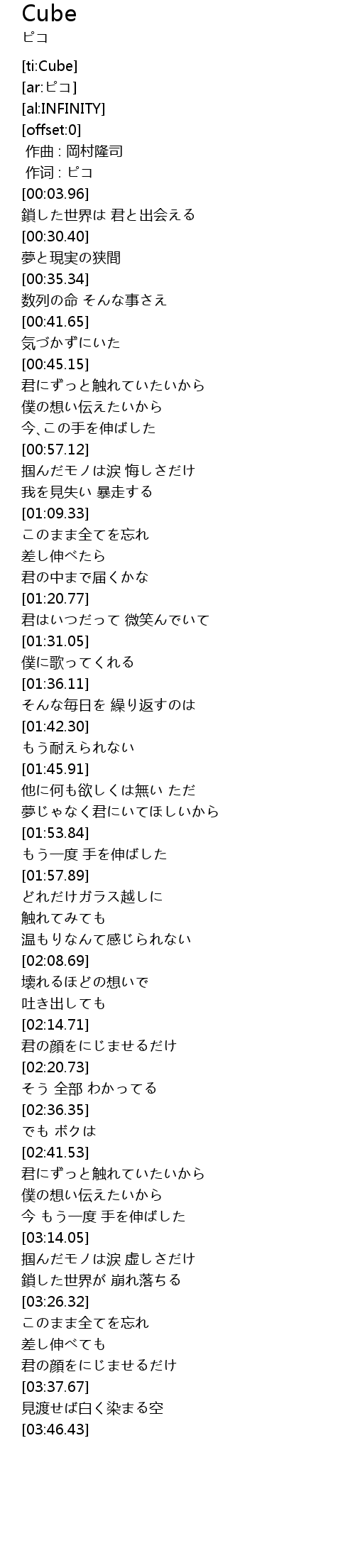 [03:21.54] 鎖した世界が 崩れ落ちる
