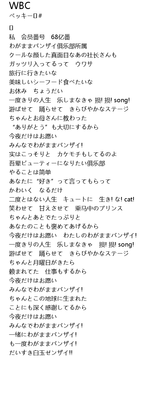 | 今夜だけはお愿い わたしのわがままバンザイ! | |