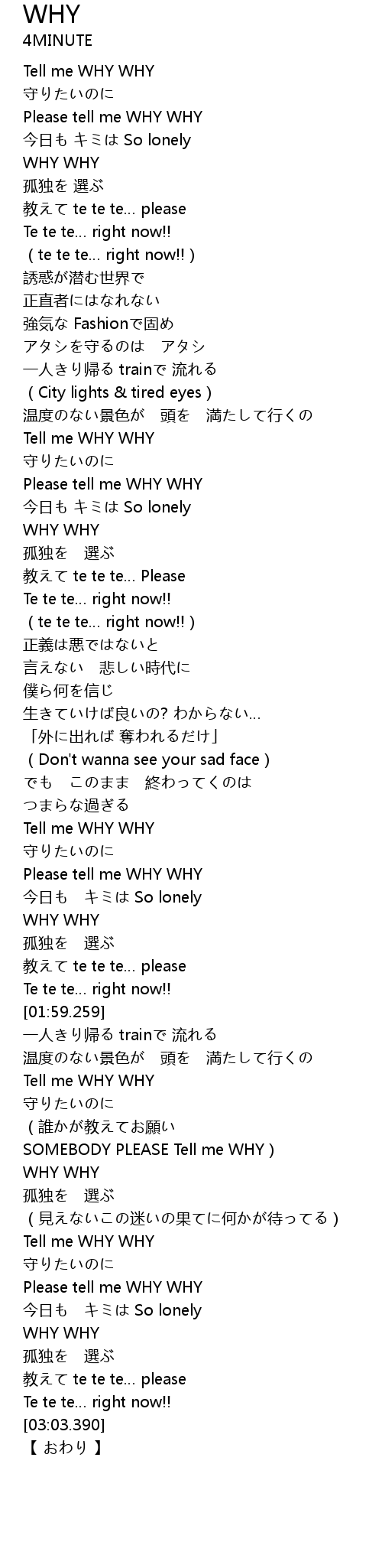 | [02:51.660] | Please tell me WHY WHY |