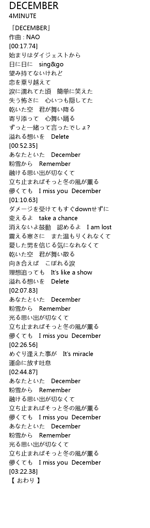 | [01:02.11] | 立ち止まればそっと冬の風が薫る |