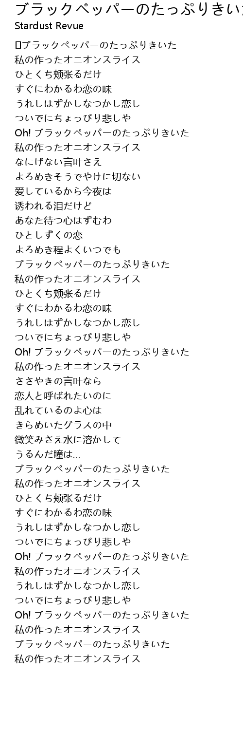 | 歌曲 | ブラックペッパーのたっぷりきいた私の作ったオニオンスライス |