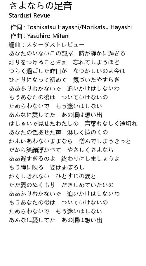 | [00:10.30] | 編曲:スターダストレビュー |