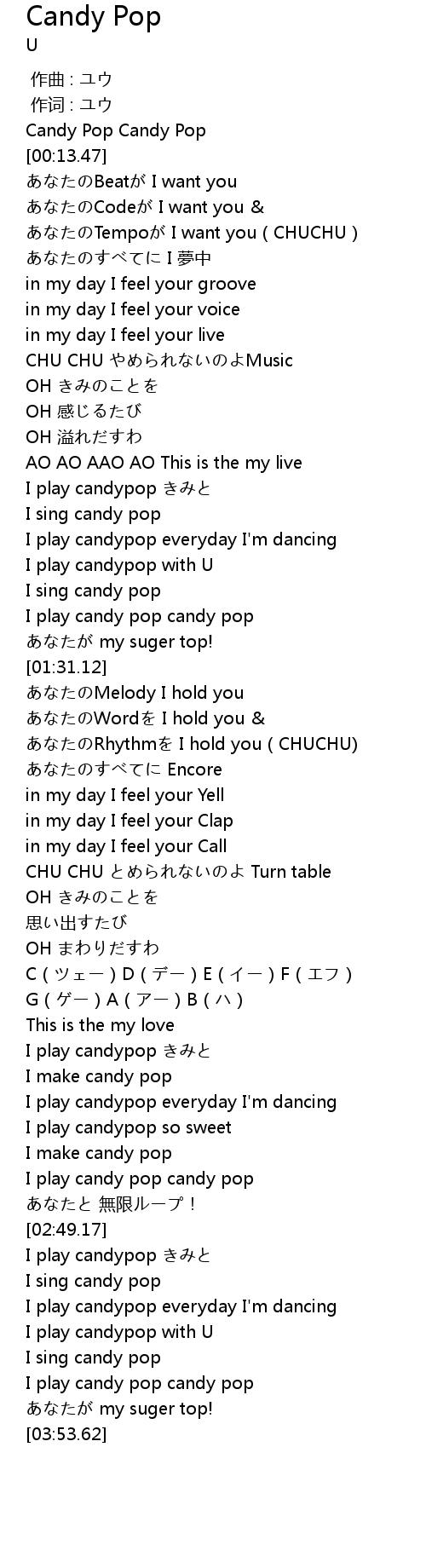| [01:09.69] | I play candypop everyday I'm dancing |