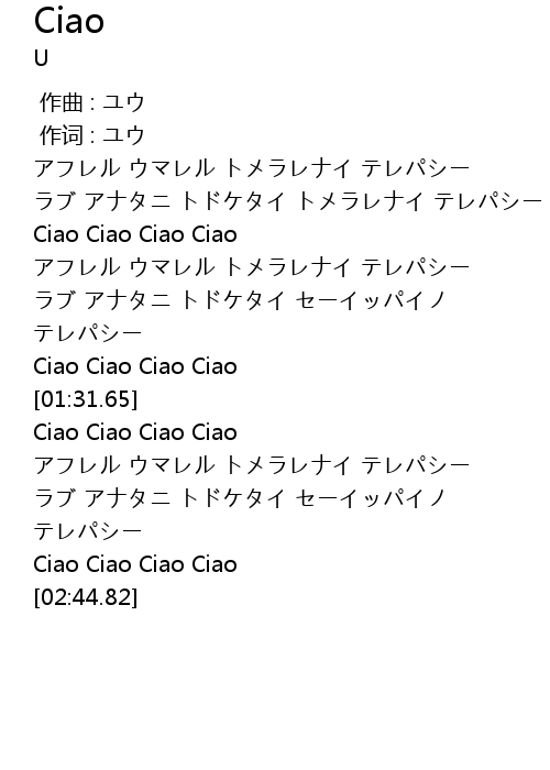 | [01:14.33] | Ciao Ciao Ciao Ciao |