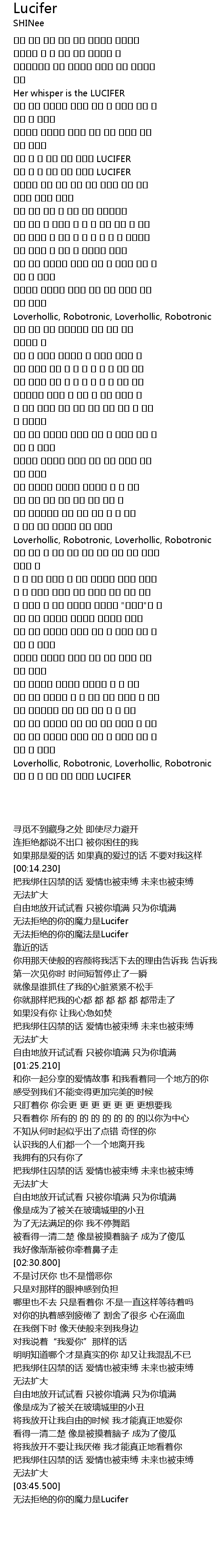 | [03:49.120] | 거부 할 수 없는 너의 마력은 LUCIFER |