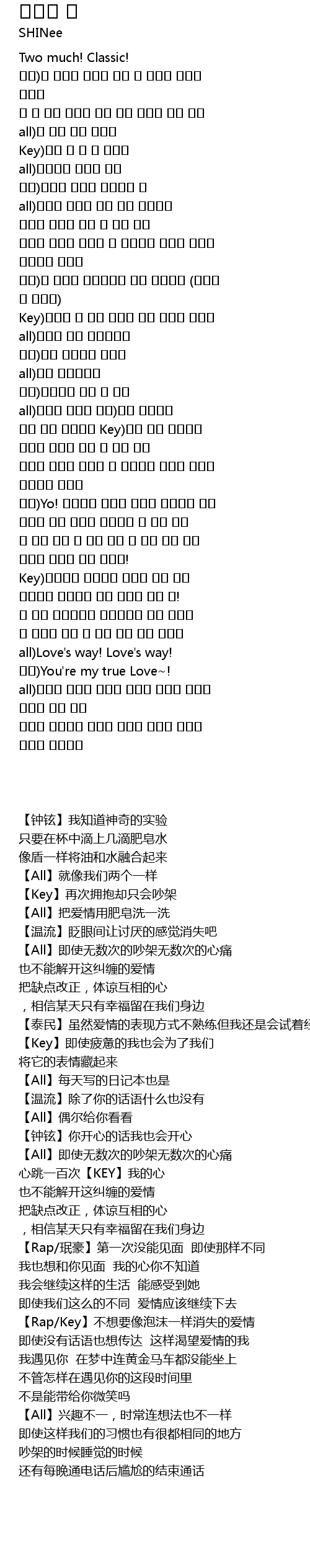 | [01:10.380] | 【泰民】虽然爱情的表现方式不熟练但我还是会试着经常说出来【珉豪】我爱你,爱你 |
