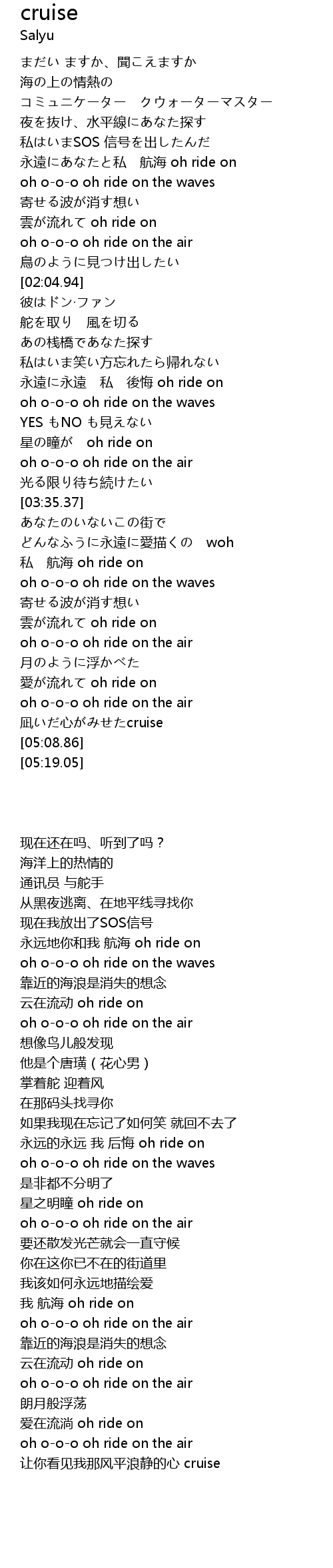 | [04:18.34] | 我 航海 oh ride on |