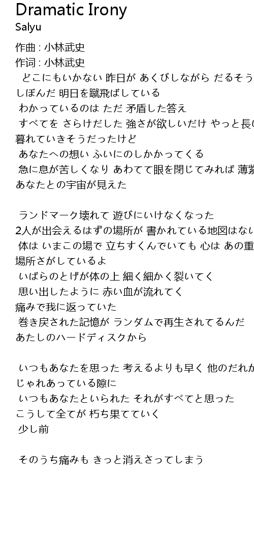| 体は いまこの場で 立ちすくんでいても 心は あの重なる 場所さがしているよ | |