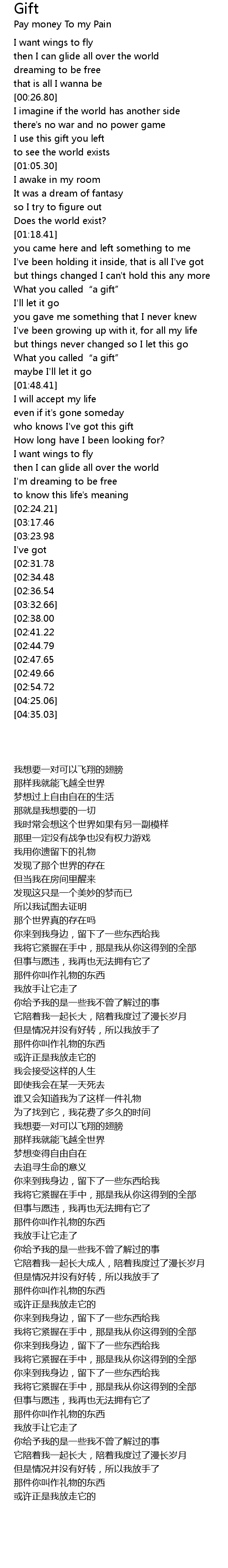 | [03:53.39][02:34.48] | What you called" a gift" |