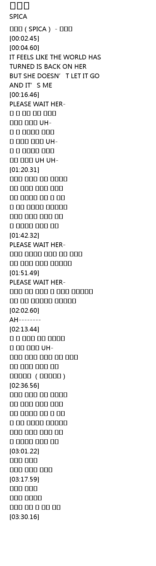 | [00:00.53] | 스피카(SPICA) - 일기장 |