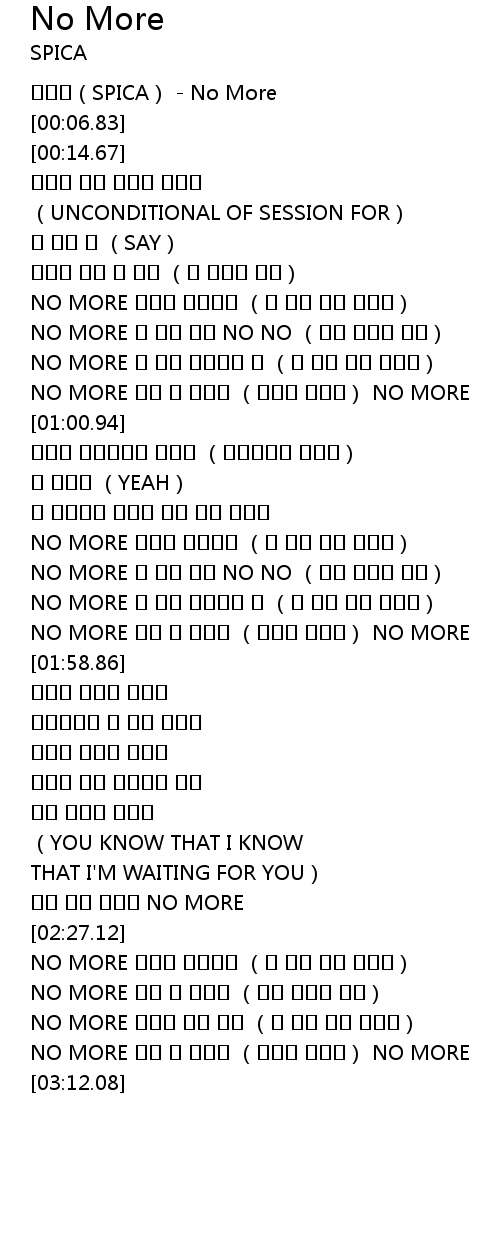 | [00:00.46] | 스피카(SPICA) - No More |